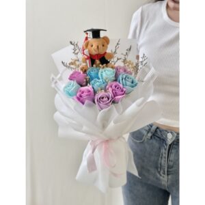 Regular : Soap roses (10 stalks), baby’s breath & caspia, graduation teddy (1 piece)