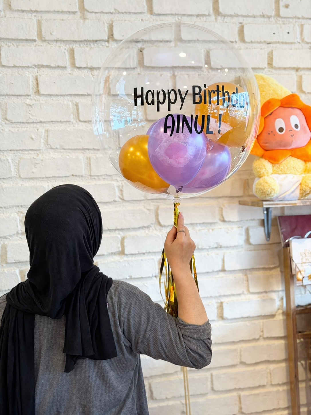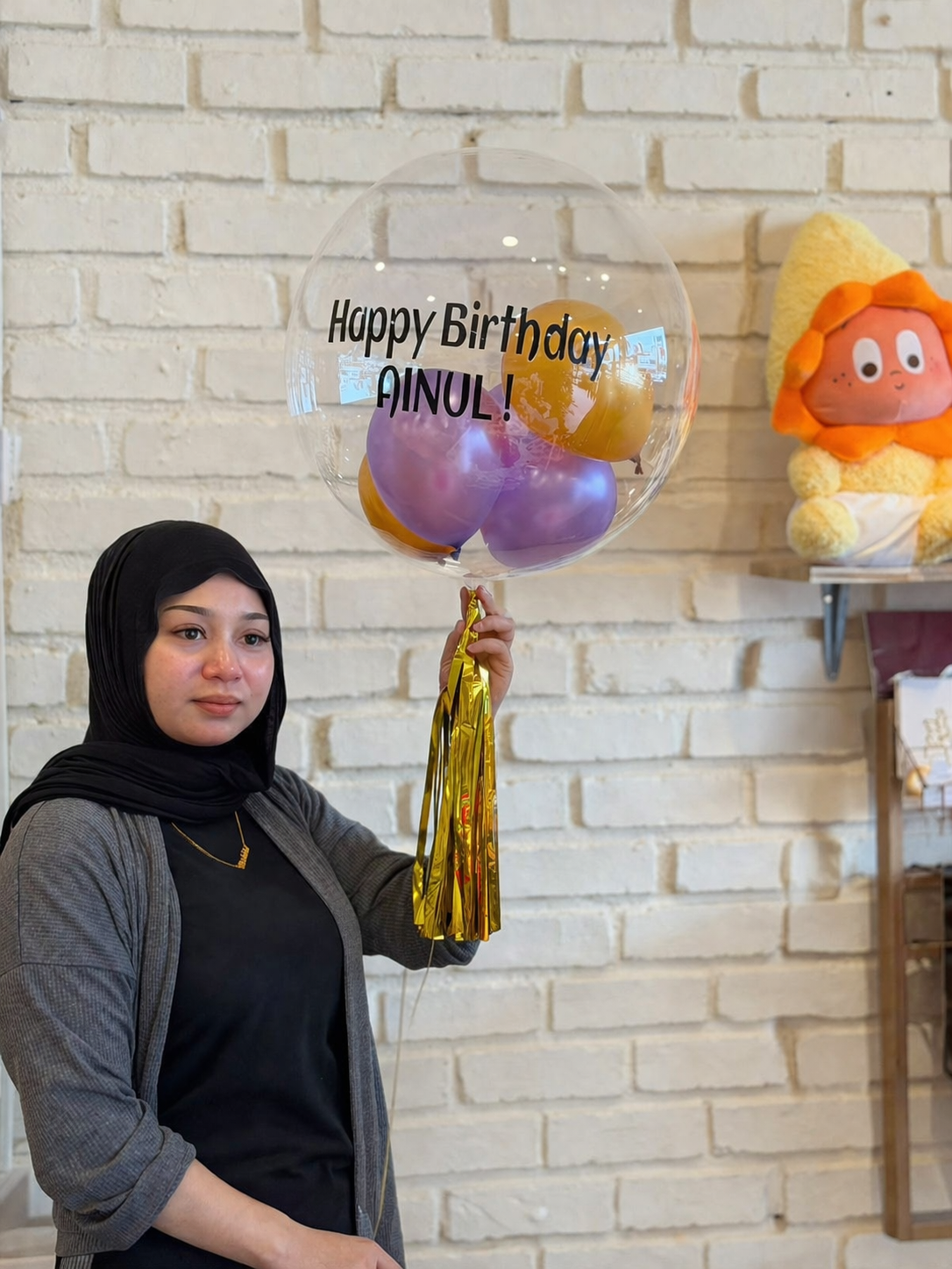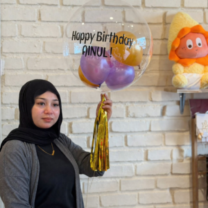 • 1 × Transparent Bubble Balloon with “Happy Birthday” text, filled with mini balloons