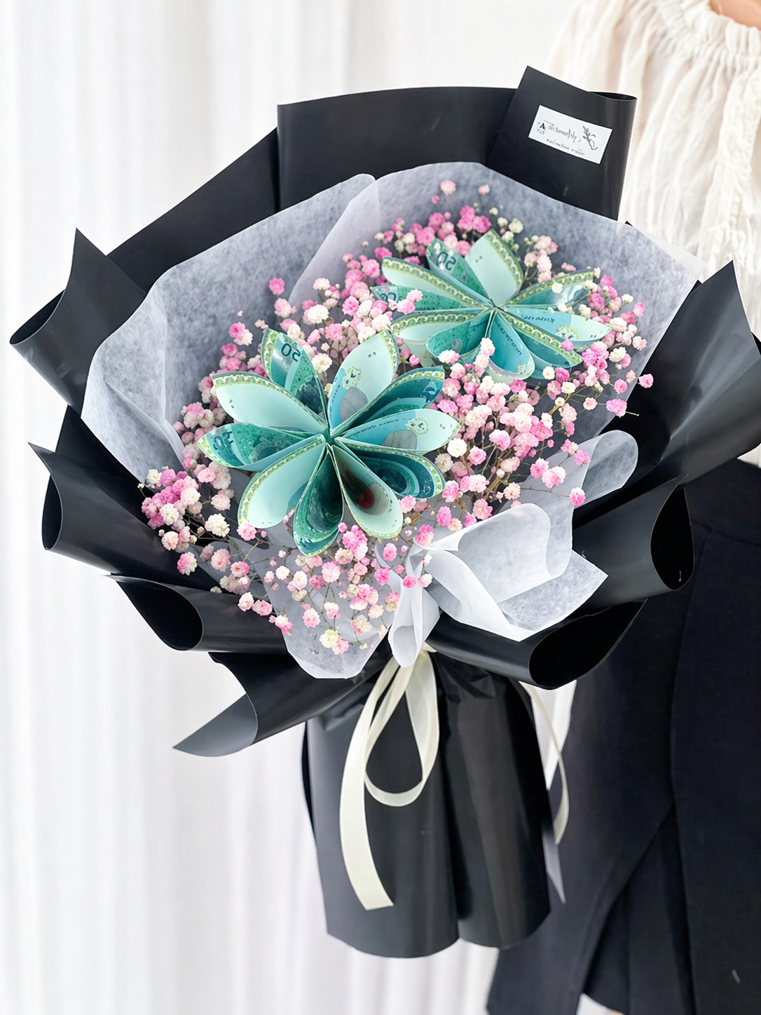 Delivery is via Lalamove, and while we aim for timely service, delays may occasionally occur beyond our control. Due to high demand, we will ensure the highest quality and close matches if the exact wrapping or ribbon is unavailable. Fresh flower may differ slightly in size and appearance due to their natural uniqueness. We strive to deliver perfection with every money bouquet. If availability changes, we’ll ensure the same quality and aesthetic as shown. Your satisfaction is our top priority!