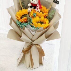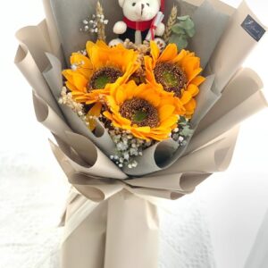Regular : Sunflowers, Eucalyptus Leaves, Blue Caspia Fillers, Dried Wheat, Graduation Teddy Bear