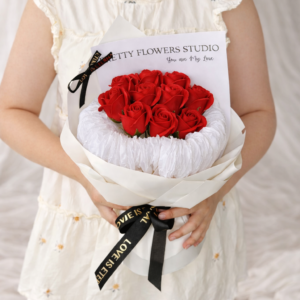 A graceful arrangement of vibrant red roses delicately wrapped in soft white layers and finished with an elegant ribbon. This bouquet represents pure love, sincerity, and timeless romance — perfect for Valentine’s Day, anniversaries, proposals, or when you want to express love in its most refined form.