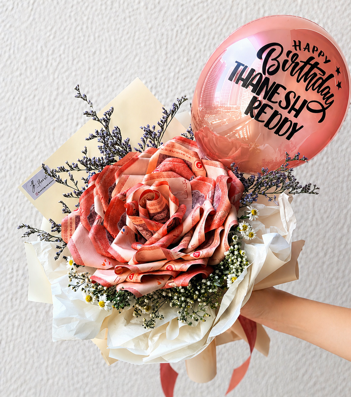 Delivery is via Lalamove, and while we aim for timely service, delays lay occasionally occur beyond our control. Due to high demand, we will ensure the highest quality and close matches if the exact wrapping or ribbon is unavailable. Fresh flower may differ slightly in size and appearance due to their natural uniqueness. We strive to deliver perfection with every money bouquet. If availability changes, we’ll ensure the same quality and aesthetic as shown. Your satisfaction is our top priority!