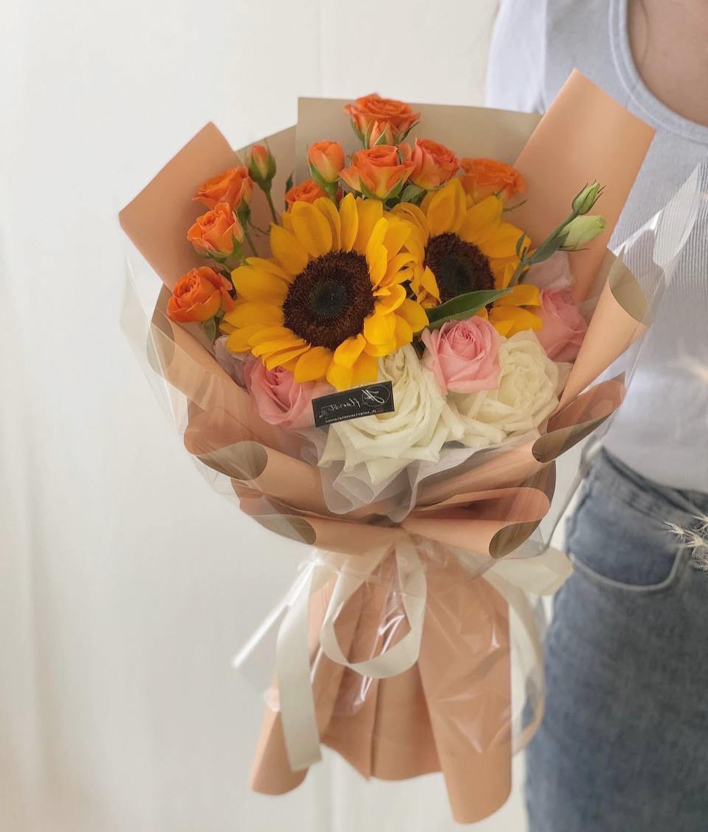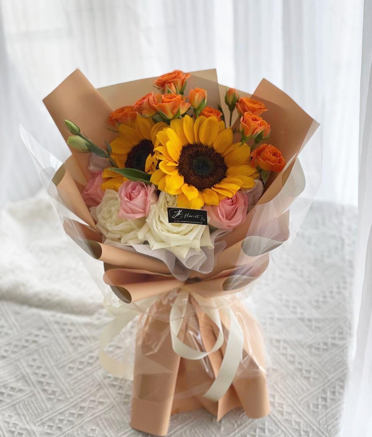 Regular : Sunflower (2 stalks), Spray Roses, Roses (6 stalks)